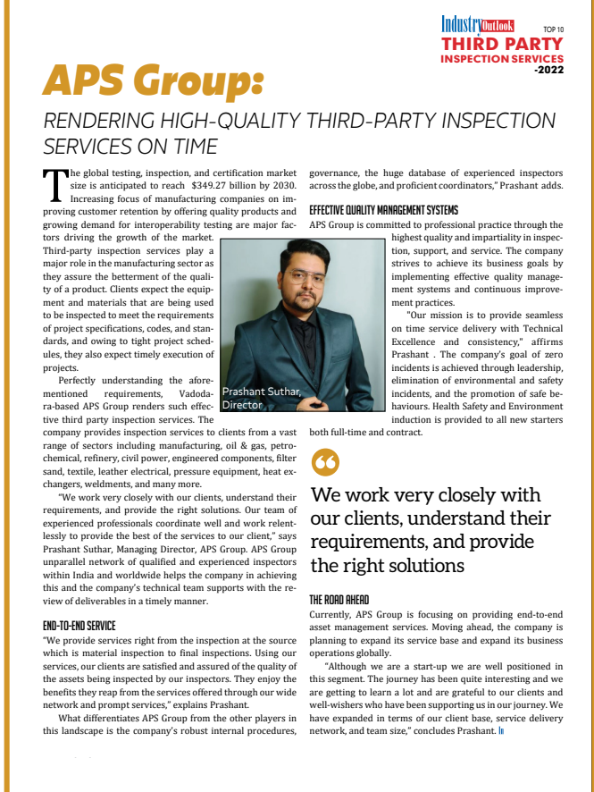 APS Group has been featured in top industry magazines for our commitment to inspection, training, and certification excellence.